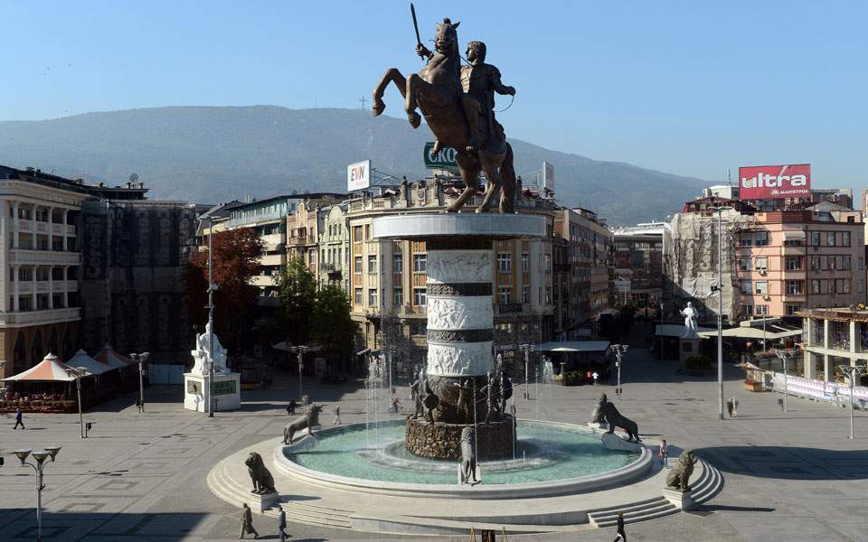 Η κεντρική πλατεία των Σκοπίων με το άγαλμα του Μεγάλου Αλεξάνδρου. Ενας συμβιβασμός για το όνομα και η εξάλειψη των προκλήσεων θα συμβάλουν στη γενική βελτίωση του κλίματος στα Βαλκάνια.