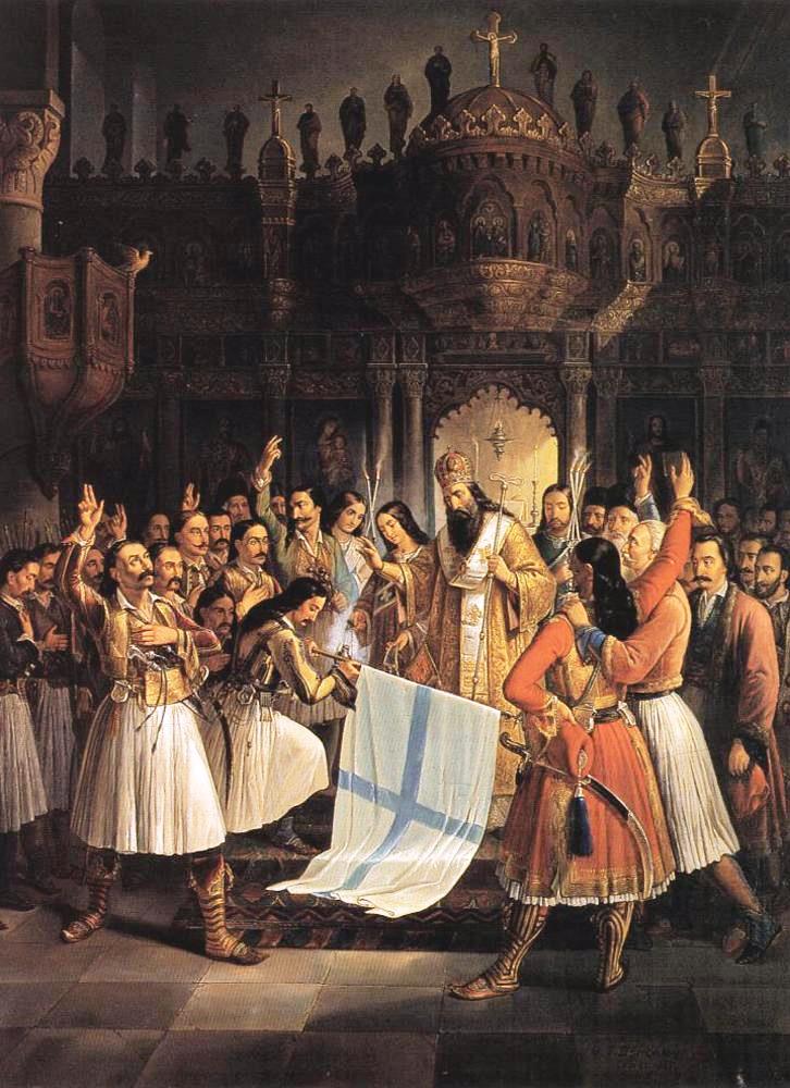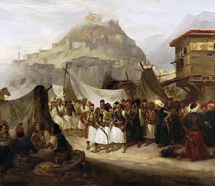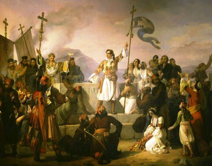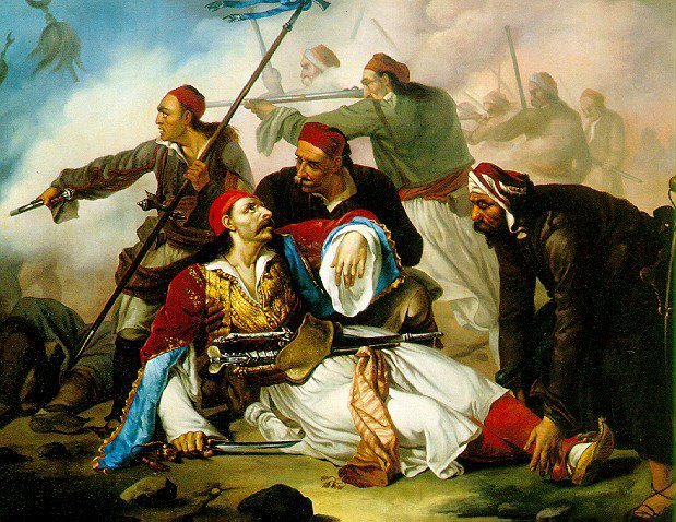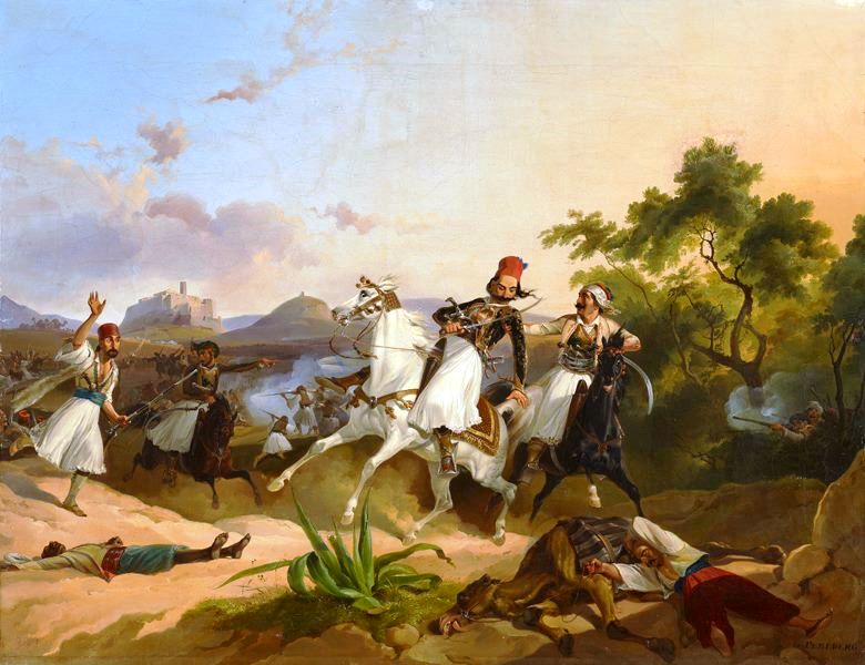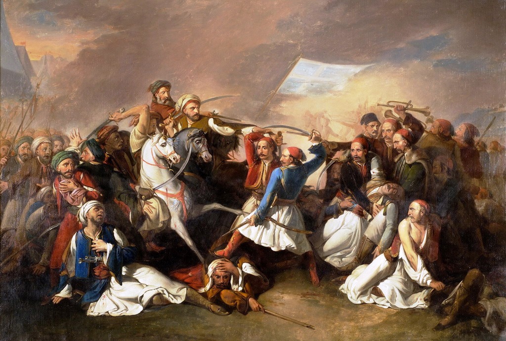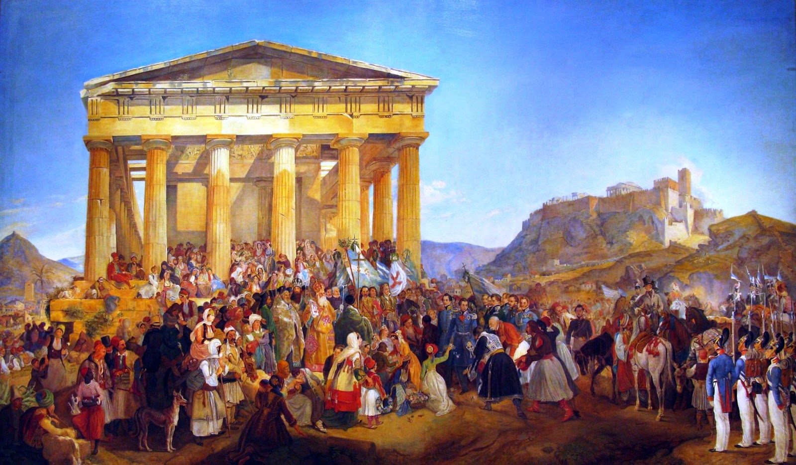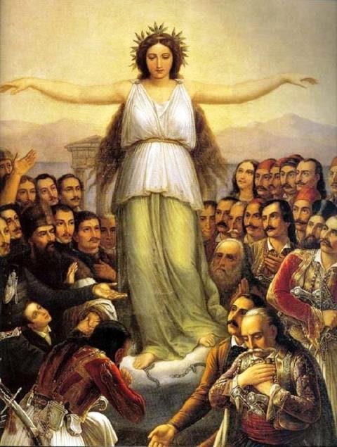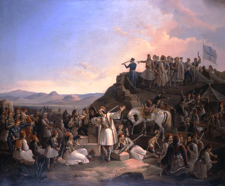 Η Ελληνική Επανάσταση κατά της Οθωμανικής αυτοκρατορίας κηρύσσεται στις 25 Μαρτίου 1821 από τον Παλαιών Πατρών Γερμανό σε ιδιαίτερα δυσχερείς συνθήκες, κυρίως έπειτα από τις πολύ σκληρές αποφάσεις της Ιερής Συμμαχίας μετά το Συνέδριο της Βιέννης το 1815. Πολιτικά, καμιά μεγάλη δύναμη δεν ήθελε την εξέγερση των Ελλήνων γιατί θα ενίσχυε τις κοινωνικές εξεγέρσεις στην Ευρώπη που εκείνη την εποχή ήταν σε έξαρση. Μετά, η κάθε χώρα είχε συμφέροντα στην ύπαρξη της Οθωμανικής Αυτοκρατορίας, παρόμοια συμφέροντα με τα σημερινά, γεωγραφικά και οικονομικά. Ο πνευματικός κόσμος της Ευρώπης όμως είχε διαποτίσει τους λαούς με τον αρχαιοελληνικό πολιτισμό που διδάσκονταν στα Πανεπιστήμια και επέφερε μια γενική και ισχυρή διάθεση συστράτευση με τους εξεγερμένους Έλληνες. Στρατολογήθηκαν οικειοθελώς πολλοί φοιτητές και παλιοί στρατιώτες. Έλληνες του εξωτερικού και φιλέλληνες με εράνους έστελναν χρήματα, τρόφιμα και όπλα. Πέρα από αυτό, και οι άνθρωποι της τέχνης (κυρίως μέσα από την ζωγραφική και την ποίηση) ενίσχυαν το φιλελληνικό πνεύμα. Από καιρό, πολλοί φιλέλληνες που θαύμαζαν την κλασική αρχαιότητα επισκέπτονταν την τουρκοκρατούμενη Ελλάδα. Αρχαιόφιλοι αλλά και αρχαιοκάπηλοι, συγγραφείς και καλλιτέχνες ποθούσαν να θαυμάσουν τα αρχαία μνημεία, να πατήσουν την γη των αρχαίων Ελλήνων σοφών. Ζωγράφιζαν ερείπια με διάχυτη τη δόξα της αρχαίας Ελλάδας. Ο αριθμός των έργων αυτού του αιώνα εντυπωσιάζει! Το γνωστότερο μοτίβο ήταν η Ακρόπολη. Ως τότε, το αρχαίο πνεύμα επισκίαζε την πραγματικότητα των σύγχρονων Ελλήνων. Αδυνατούσαν να εκτιμήσουν οτιδήποτε στην Ελλάδα που δεν αφορά την αρχαιότητα.