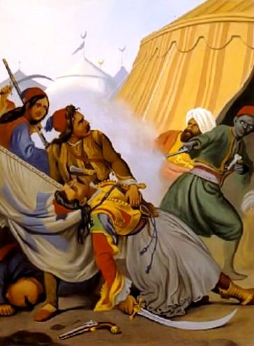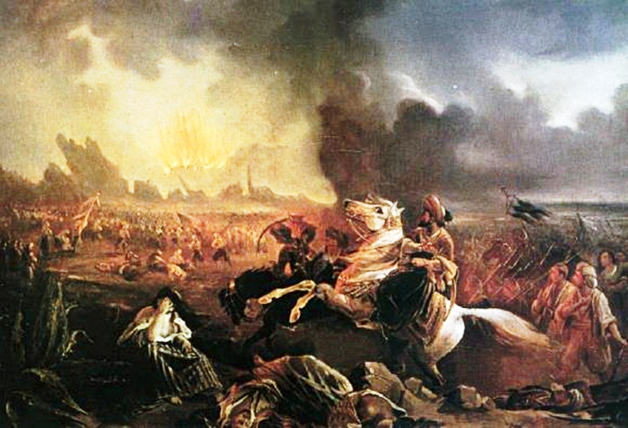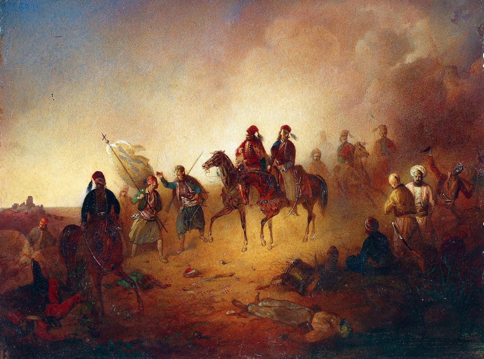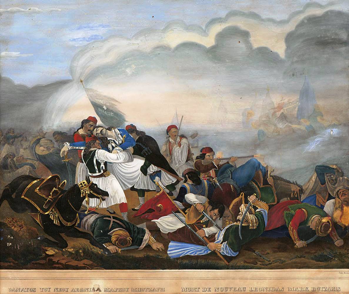 Franciszek Tomasz Tepa - Ο Μπότσαρης στη μάχη του Καρπενησίου τη νύχτα της 8ης Αυγούστου 1823, (1852) |