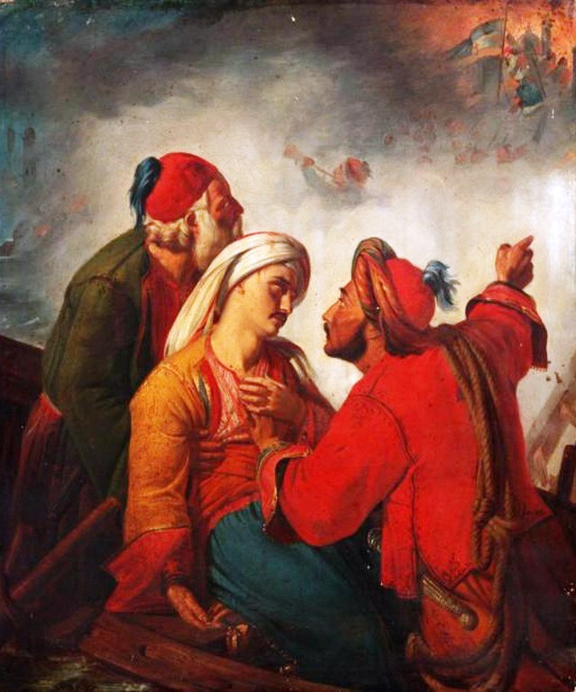 Jean-Claude Bonnefond -Τραυματισμένος Έλληνας αξιωματικός μπροστά στα τείχη κατειλημμένης πόλης |