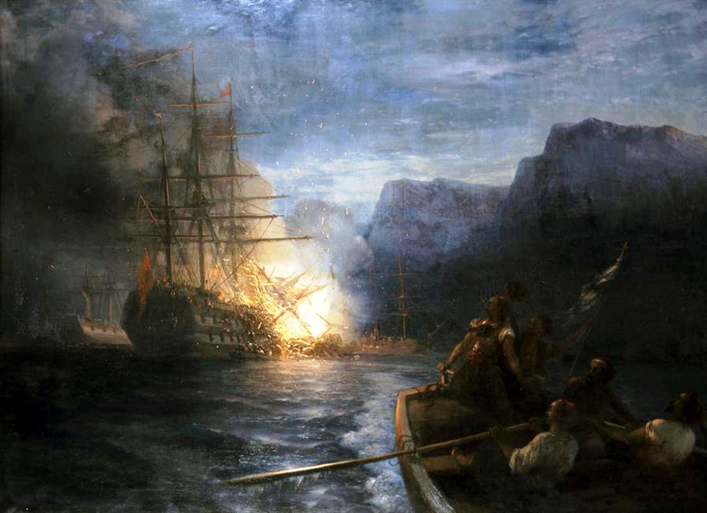 Ivan Aivazovsky-1817-1900- Το κάψιμο της τουρκικής ναυαρχίδας απο τον Κανάρη |