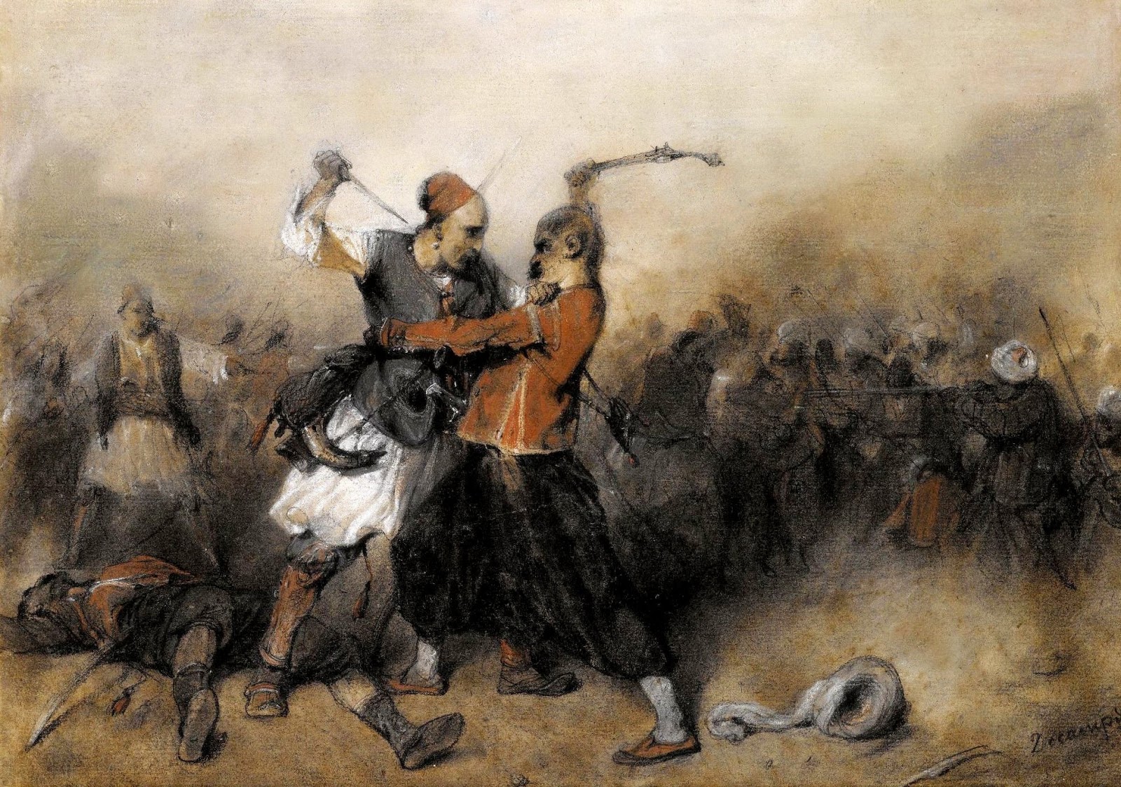 Alexandre-Gabriel Decamps - Μάχη Έλληνα και Τούρκου |
