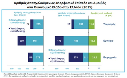Οι θέσεις εργασίας στην βιομηχανία επίσης είναι «ποιοτικές» δηλ. πλήρους απασχόλησης, αφού η απόκτηση εμπειρίας και τεχνογνωσίας είναι το ζητούμενο, και φυσικά υψηλότερων αποδοχών από τον τουρισμό όπου κάποιοι θέλουν να στρέψουν την προσοχή μας. Σύμφωνα με στοιχεία του ΣΕΒ οι μέσες αμοιβές ανά εργαζόμενο στην βιομηχανία είναι €23.500 αλλά μόνο €11.600 στον τουρισμό. Αυτό συμβαίνει γιατί στην βιομηχανία το 70% των εργαζόμενων είναι ειδικευμένοι έναντι 13% στον τουρισμό και το 30% υψηλότερης εκπαίδευσης έναντι μόνο 4% στον τουρισμό... Ενώ λόγω της υψηλότερης προστιθέμενης αξίας των προϊόντων η βιομηχανία αυξάνει και την παραγωγικότητα της οικονομίας κάτι που είναι το ζητούμενο σήμερα.