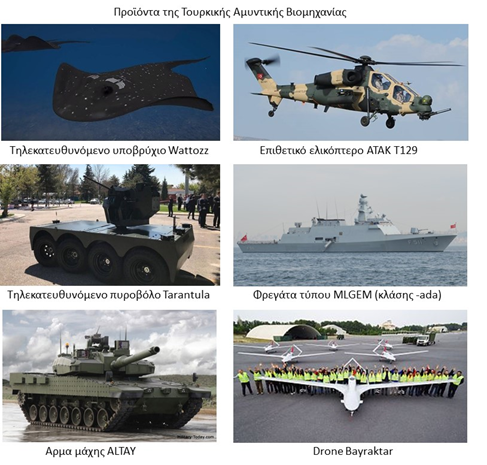 τα μη επανδρωμένα σκάφη (drones) αναγνώρισης Bayraktar TB2, τα επιθετικά Alpagu, Kargu, Doga και το νεότερο Akinci