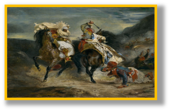 ‘‘Η μάχη του Γκιαούρη και του Χασάν’’. Πίνακας του Ντελακρουά, εμπνευσμένος από το ποίημα του Λόρδου Μπάϋρον, ‘‘Ο Γκιαούρης’’ (ο άπιστος), ο οποίος εκδικείται το θάνατο της ερωμένης του από τον Χασάν. Ποιός αμφιβάλλει; Πρόκειται για προαιώνια διαμάχη. Πρόκειται για τον διαχρονικό γεωπολιτικό δυϊσμό του expansion – containment. O λαίμαργος Χασάν πάντα να επιβουλεύεται το βιός του Γκιαούρη.