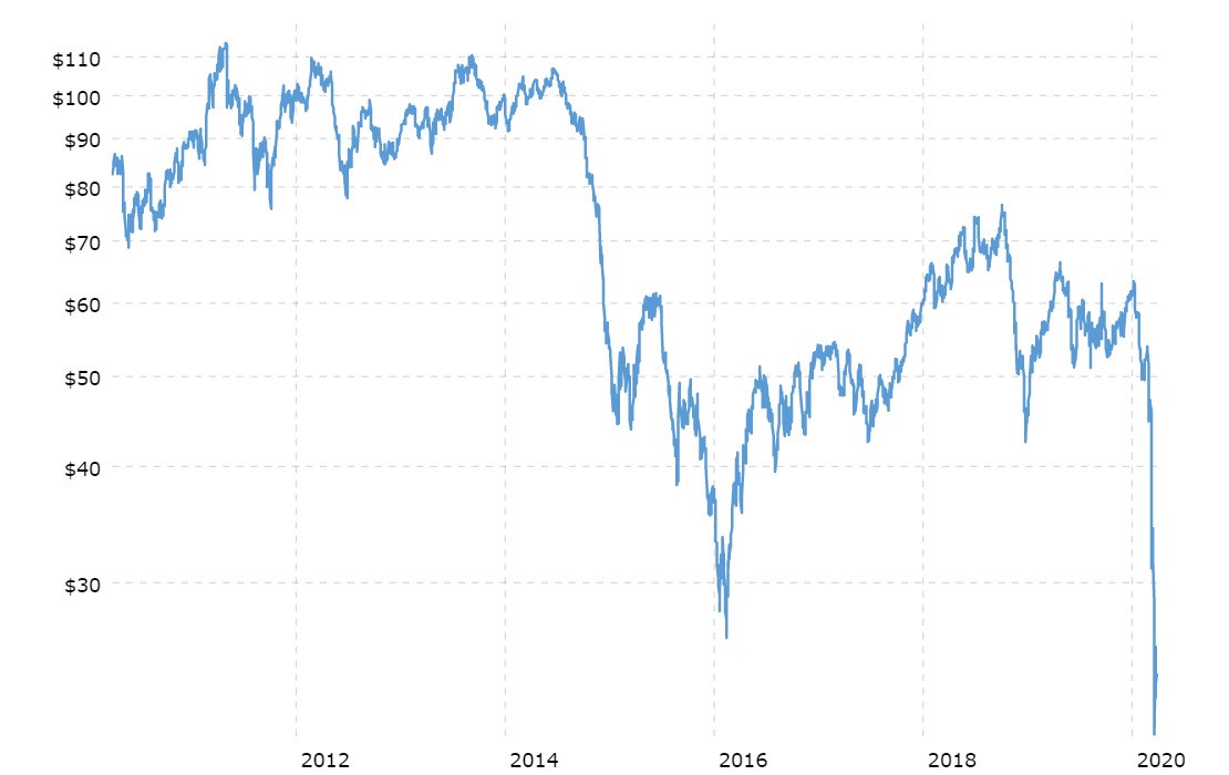 «Την 1η Ιανουαρίου, ένα βαρέλι αργού πετρελαίου πωλήθηκε για 67,05 $ στην ανταλλαγή NASDAQ της Νέας Υόρκης. Κατά το χρόνο της γραφής, διαπραγματεύεται σε περίπου 30,00 $ ανά βαρέλι. Τα αποθέματα πετρελαίου των εταιρειών αξίζουν περίπου το μισό από ότι ήταν στην αρχή του έτους. Η αξία των γιγάντων όπως η BP αντικατοπτρίζεται με αυτό: Σήμερα, το ανώτατο όριο της αγοράς της BP αξίζει το 51% του τι ήταν στις αρχές του Ιανουαρίου».
