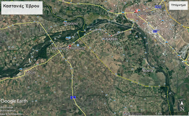 Έβρου. Η τελευταία Ελληνική κωμόπολη πριν ο ταξιδιώτης περάσει την μεθόρια γραμμή για να εισέλθει στο προγεφύρωμα του Κάραγατς και να μεταβεί στην Ανδριανούπολη. Το προγεφύρωμα του Κάραγατς είναι το μόνο μέρος που η Ελληνο-τουρκική μεθόριος, δεν είναι το μέσον του Έβρου ποταμού, αλλά μια περιοχή δυτικά της Ανδριανούπολης και του Έβρου ποταμού, υπό μορφή τριγώνου. Σκοπός αυτής της σχεδίασης η «προστασία» της Ανδριανούπολης, καθόσον τα σπίτια της φθάνουν μέχρι τις όχθες του ποταμού. Και δίπλα από τις δύο σκοπιές στην όριο γραμμή, το δάσος των Καστανιών (τα δέντρα δεν είναι καστανιές αλλά λεύκες), ένα μικρό αλσύλιο, όπου περίπου το νότιο τμήμα ανήκει στην Ελλάδα, το δε Βόρειο τμήμα ανήκει στην Τουρκία, όπου είχαμε το σοβαρότερο μεθοριακό επεισόδιο τις τελευταίες δεκαετίες.